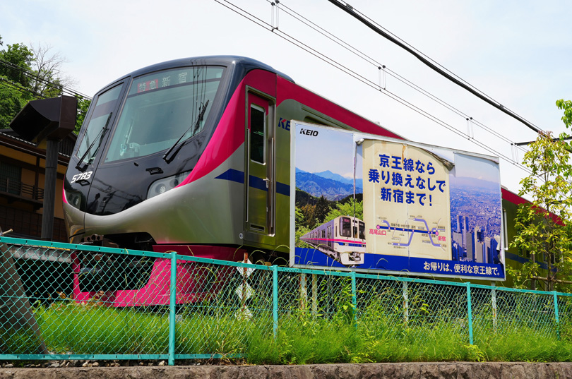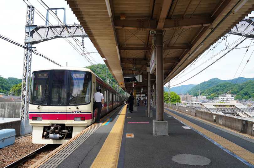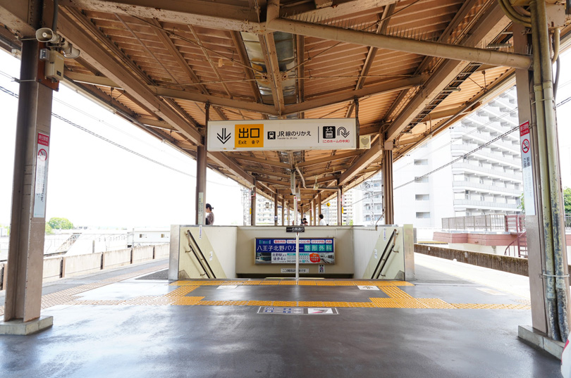 高尾駅はJR中央線と京王高尾線の2社あり、地上にあるJRに対して京王は高架上に島式ホームが1面だけあります。