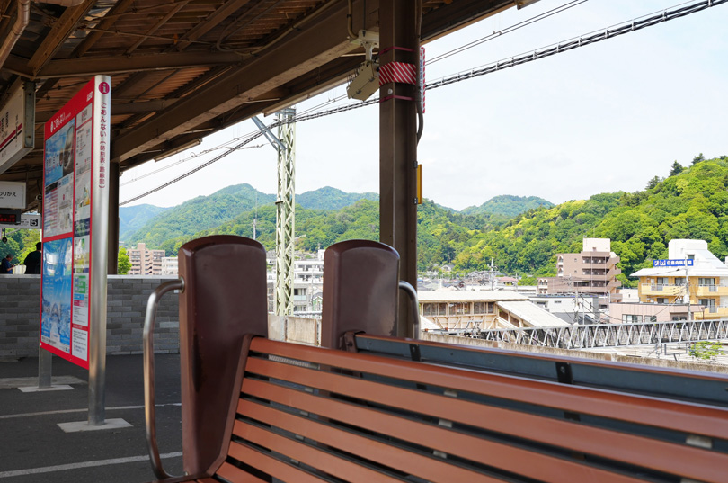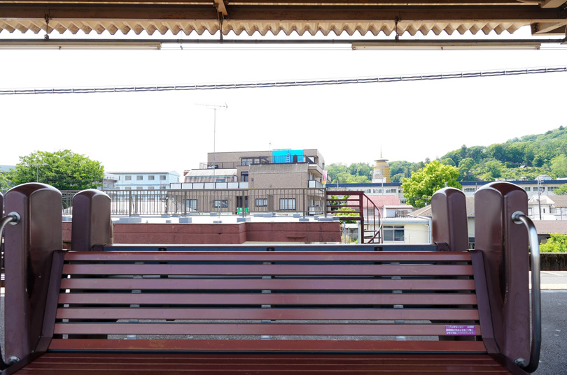 「日々は過ぎれど飯うまし」3話Bパート・13分04秒あたり、次のカット、ベンチに座るまこっちとつつじちゃん (京王線高尾駅)