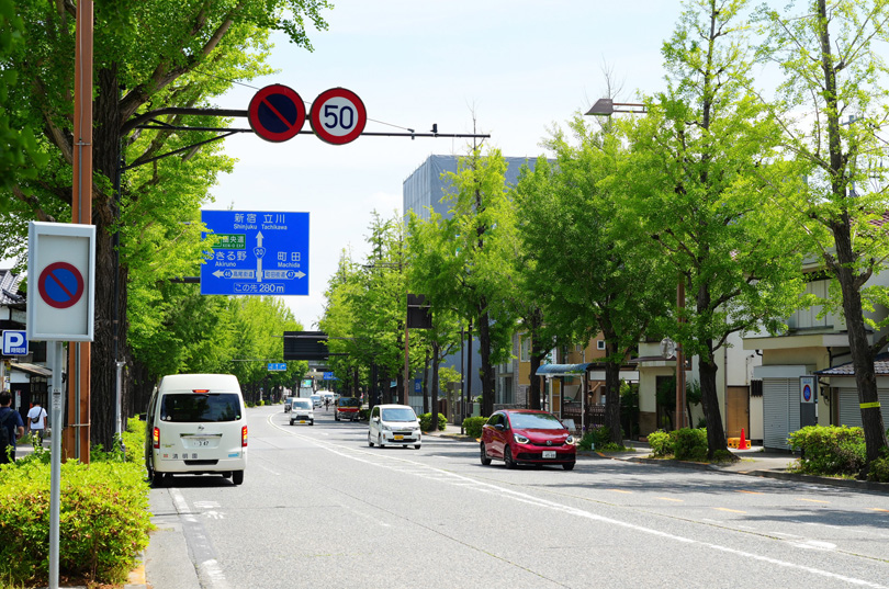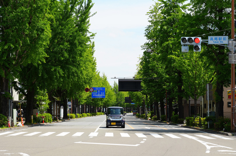 国道20号は、高尾駅前から八王子へ向かって追分町まで、道の両側にイチョウ並木が並んでいて、秋には紅葉で一面に黄色く色づいてとてもいい景観の通りです!