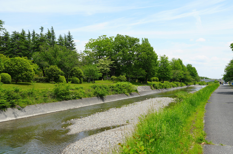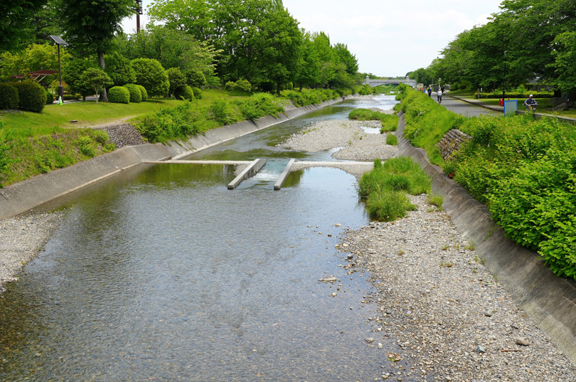 先ほどの旧道から小さな路地を抜けていくと河川敷に出ました。