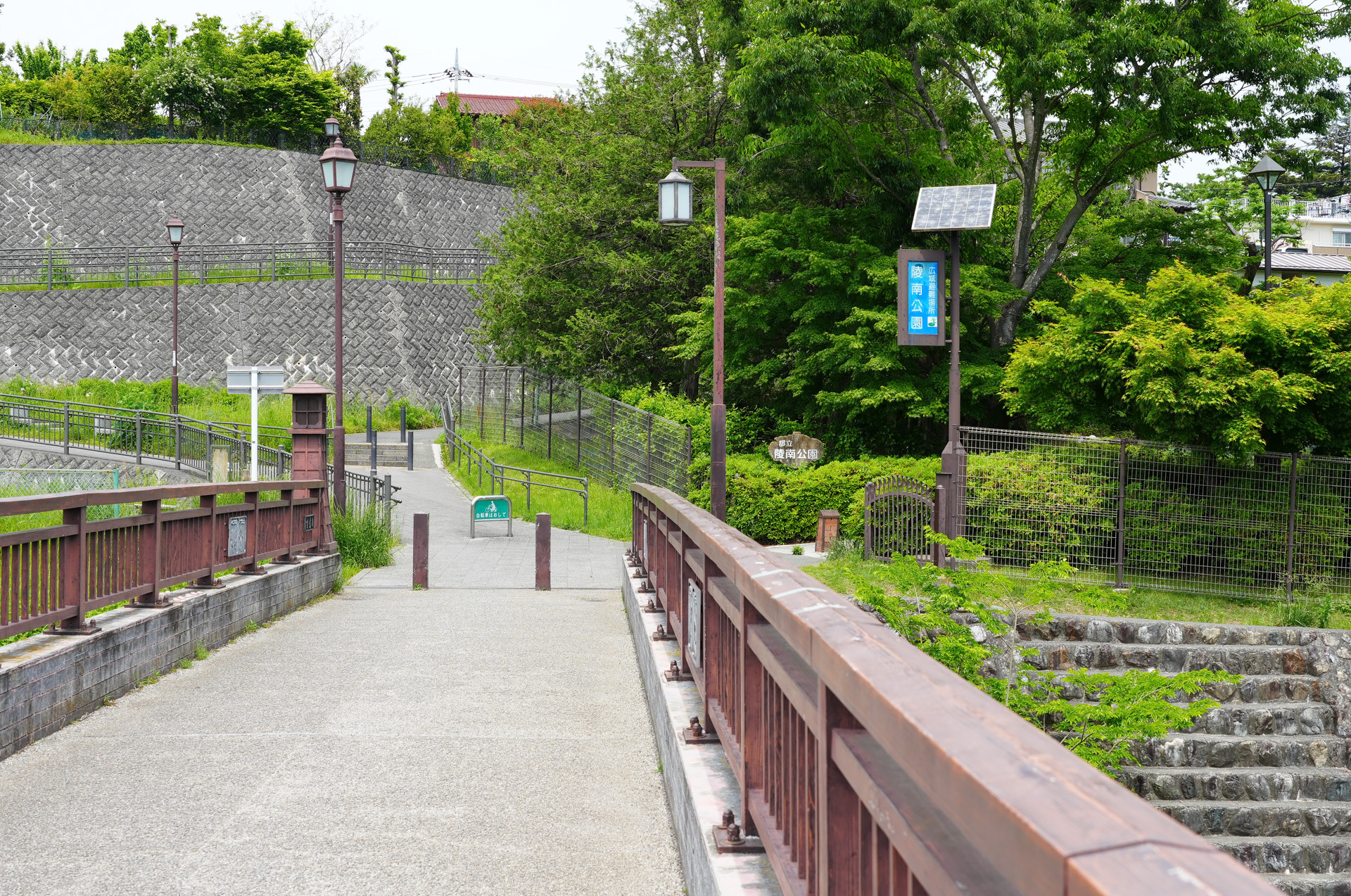 南浅川の向こう側には多摩御陵 (武蔵陵墓地) や綾南公園があります。