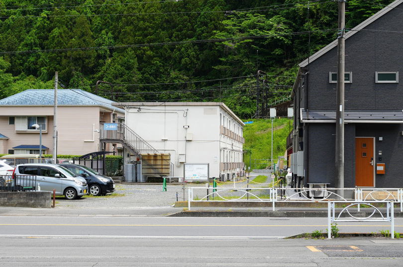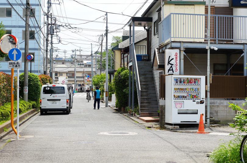 「日々は過ぎれど飯うまし」5話Aパート・6分51秒あたり、同じシーン、回送シーンの次、帰り道を歩くまこっちとくれあの後ろ姿 「ってかんじでいつも寝ちゃって、景色あんまり見れずじまいでさ-」「わかるなあ、車って眠くなっちゃうよね」(旧甲州街道)
