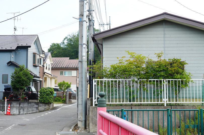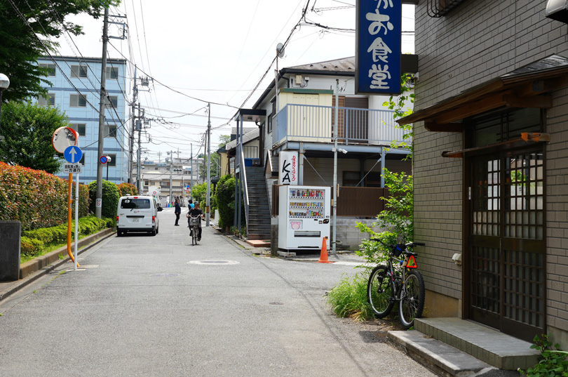 そしてこの甲州街道旧道を歩いて道の脇に水路が流れていたり付近のお宅の塀が脇に立っていたりするあたり、ここが1話「食文化研究部へようこそ」でまこっちが大学の帰りに歩いていた道でした!