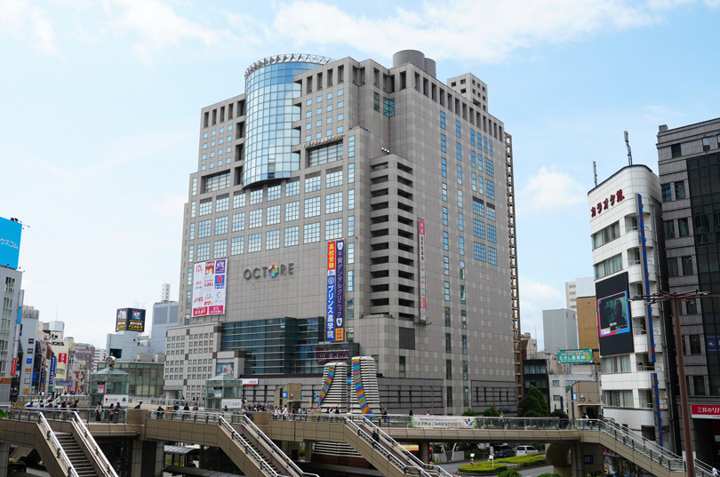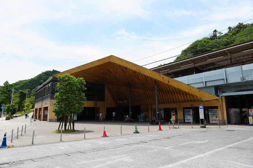 JR管理の北口は、寺社風の駅舎がとても特徴的です。