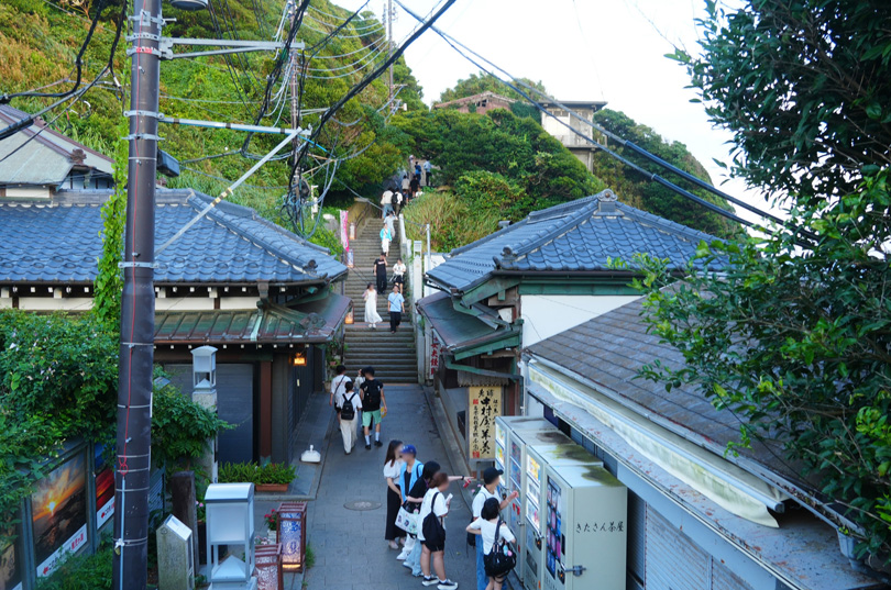 定番コースの江島神社の参道から1本脇に入ったところにある裏道の生活道路の、この雰囲気!