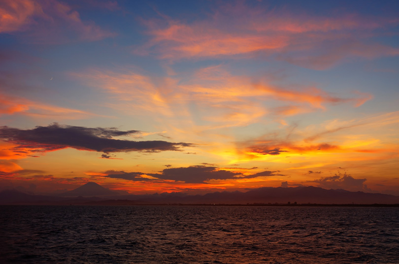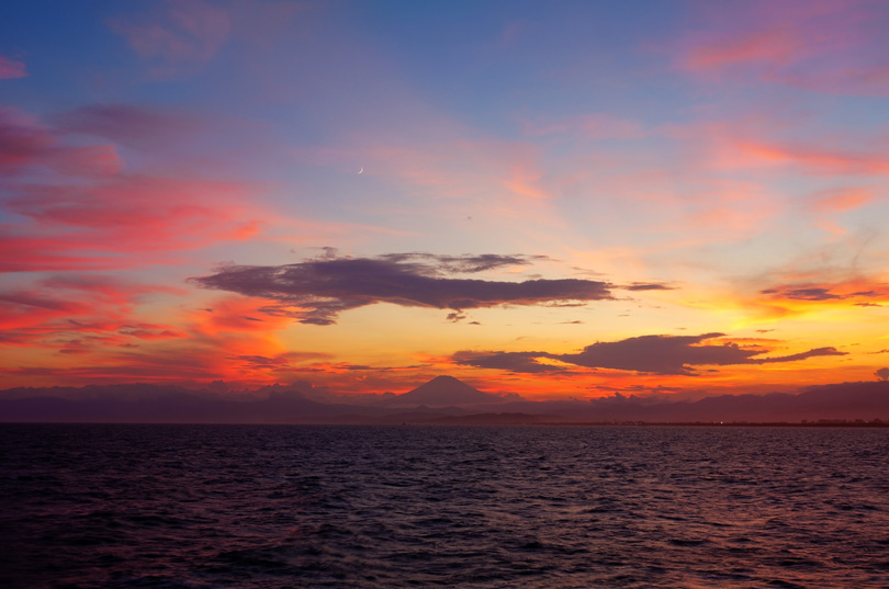 稚児ヶ淵から見る相模湾と富士山、この日の夕焼けは感動的な色の空でした!