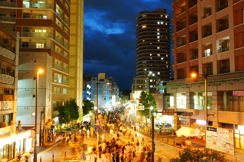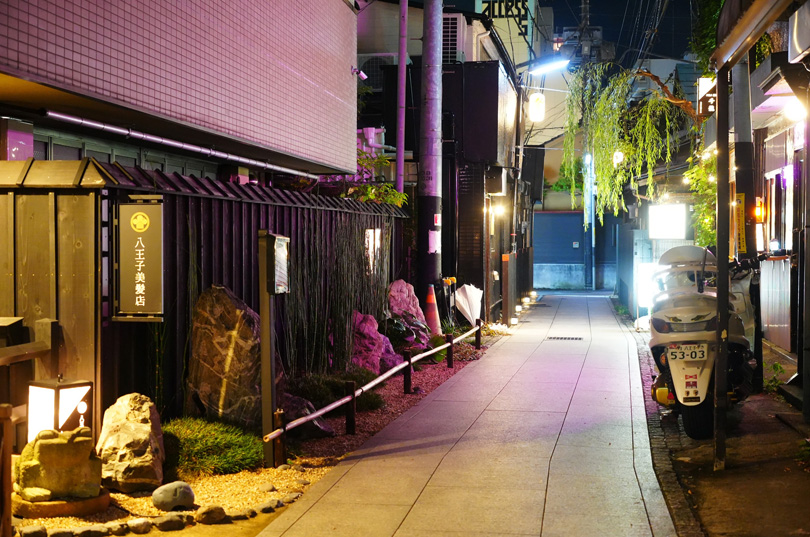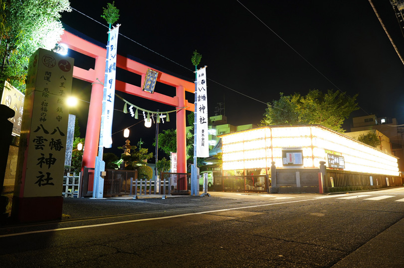 かつての八王子花街の面影を残す景観造りが、祭の夜に風情があります。