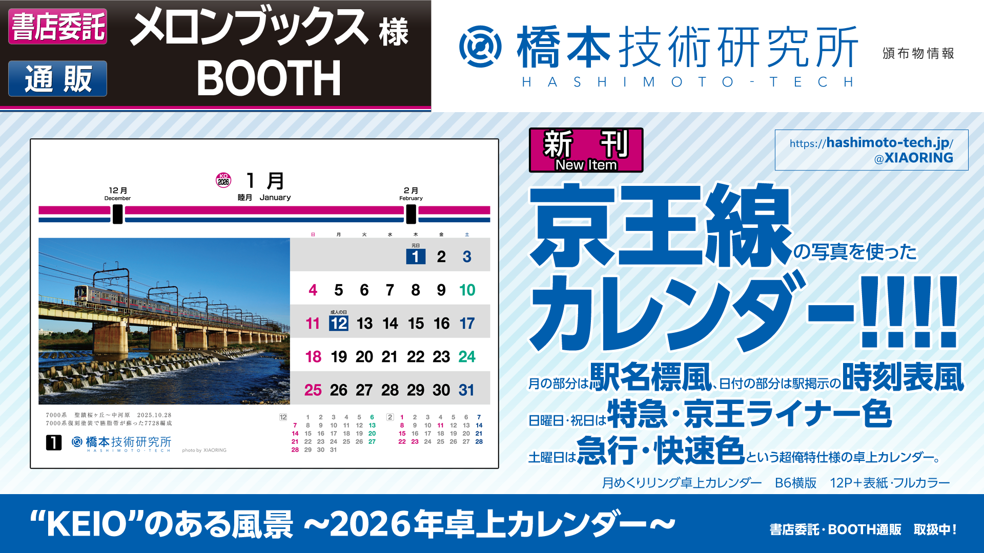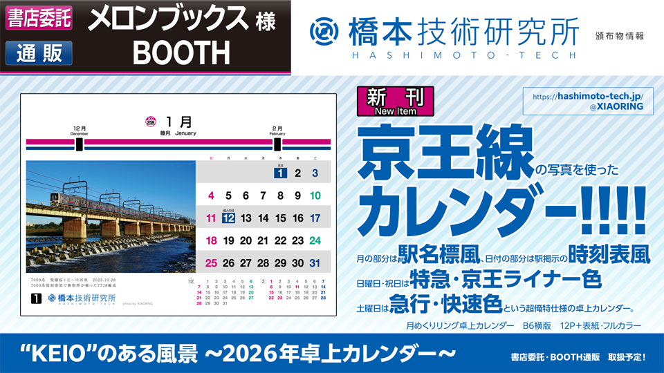 例年冬コミで頒布している京王線同人カレンダーの2026年版を制作しました!